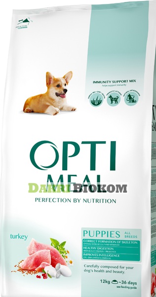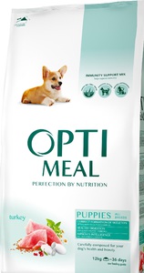 Сухой полнорационный корм Optimeal для щенков всех пород со вкусом индейки 12 кг