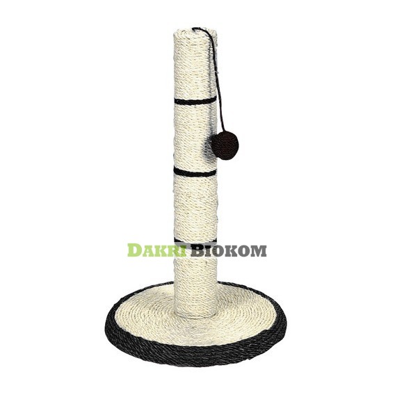Когтеточка полностью обита натуральным сизалем, дополнительно оснащена вращающейся игрушкой на веревке. Высота когтеточки 62 см.