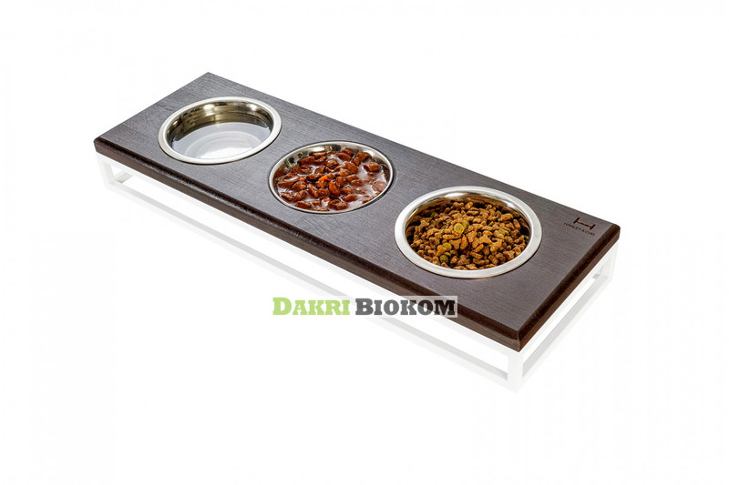 Миски с деревянной столешницей на металлической подставке для кошек и собак. Изготовлены в виде стильного, мобильного, устойчивого столика, организующего питомцу идеальное место для приема пищи или воды