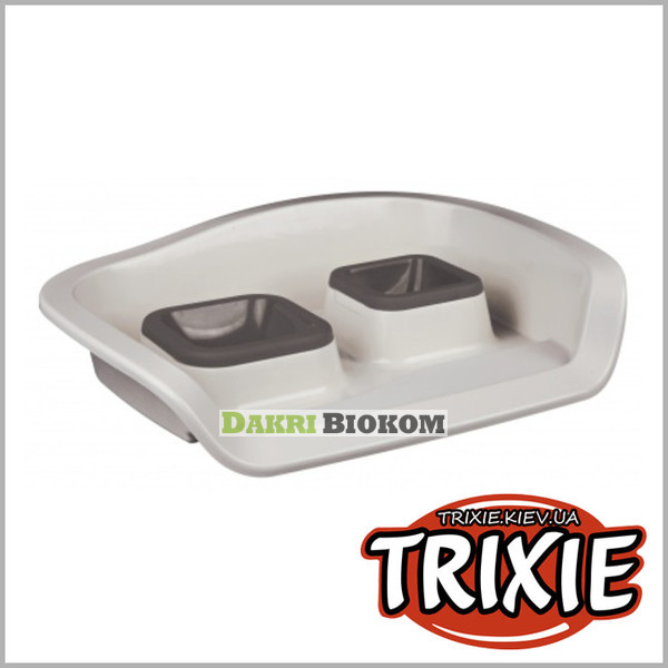 2 миски на подставке(пластик) 8х12х38см, 0.25л/0.3л, крем/серый