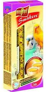 Здоровое полноценное питание из трех сортов зерен, обогащен витамином. С деревянной палочкой внутри. Обеспечивает здоровье и жизнерадостность Вашей птицы, поскольку она должна "добывать" свой корм как на воле. Состав: зерновые, хлебные изделия, фрукты 3%, растительные и минеральные вещества, мед, лецитин. Продукт содержит протеины-12.0%, жиры-3.7%, углеводы-63,5%, влагу, витамины